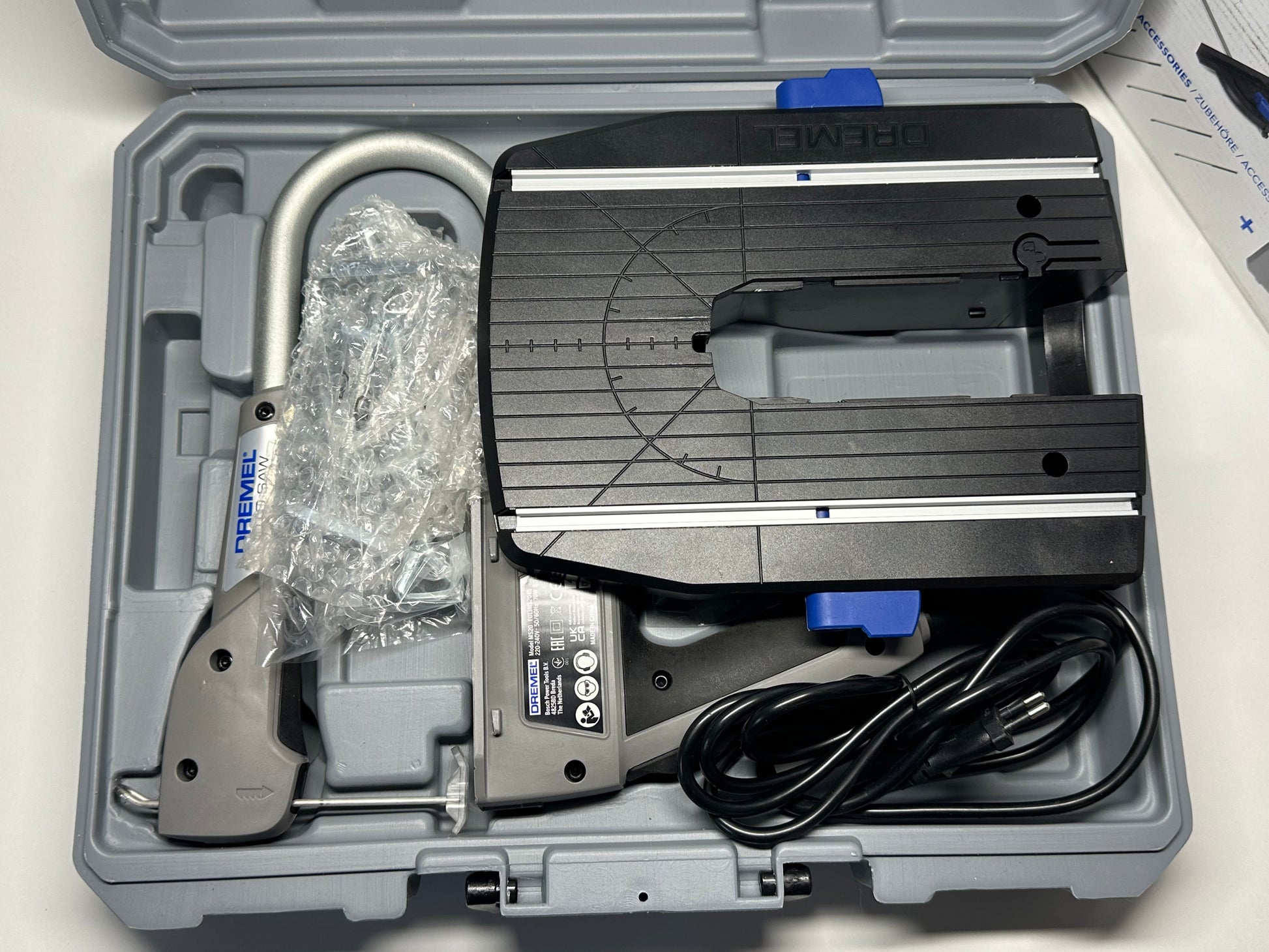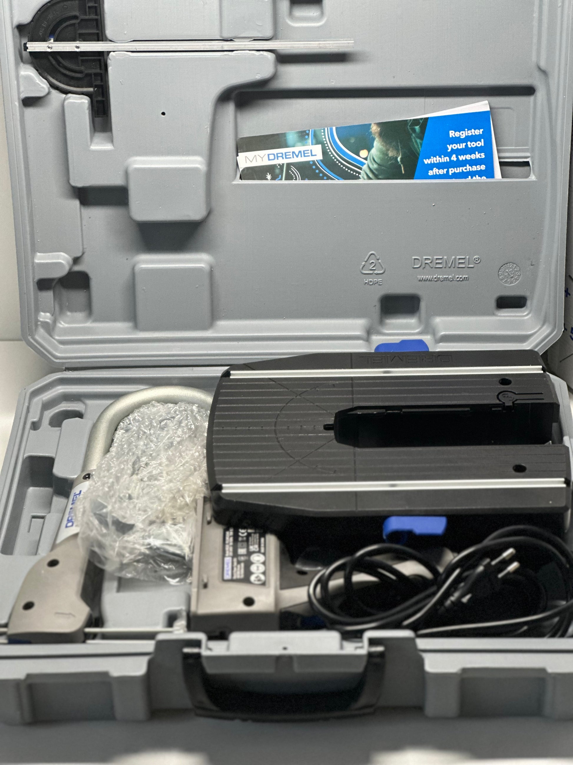 Dremel MS20 Moto-Saw Dekupiersäge, kompakte 2-in-1-Tischkreissäge (70 W) mit 1 Zubehörteil und 5 Sägeblättern für seitliche und lange Schnitte in Weiches Holz, Laminat und Kunststoff